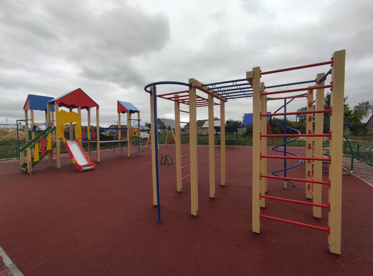 По информации главы сельского поселения Орловка Олега Худякова, на данный момент выполнены все работы по созданию основания, уложен асфальт, установлены почти все игровые элементы. Уложено покрытие из резиновой крошки. Также установлено ограждение вокруг самой площадки.