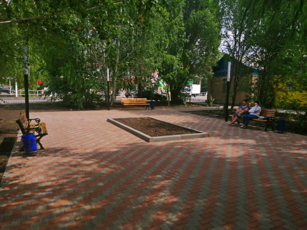 В трех скверах заменено старое ограждение на новое, в четвертом - также смонтировано современное уличное освещение, уложена брусчаткой зона тихого отдыха со скамейками и урнами.