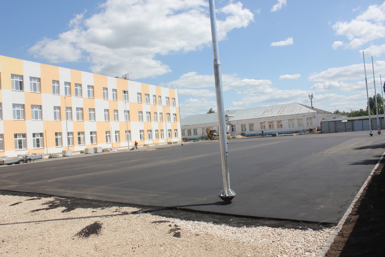 На прилегающей к школе территории подготовлена основа для будущих игровых и спортивных площадок, установлены опоры освещения, предусмотрено и место под хоккейный корт. Затем установят оборудование, уложат резиновое покрытие и сделают разметку.