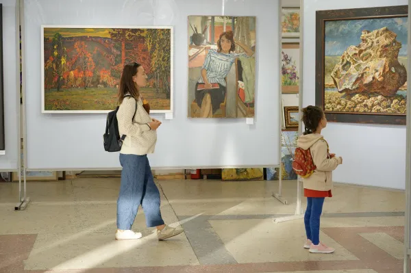 В экспозицию вошли работы художников разных поколений, как ныне живущих, так и уже ушедших. Произведения сильно отличаются не только по времени их создания, но и по стилю, технике исполнения. Соцреализм, цифровое искусство, суровый стиль, неоимпрессионизм и другие направления искусства объединены в одном зале.