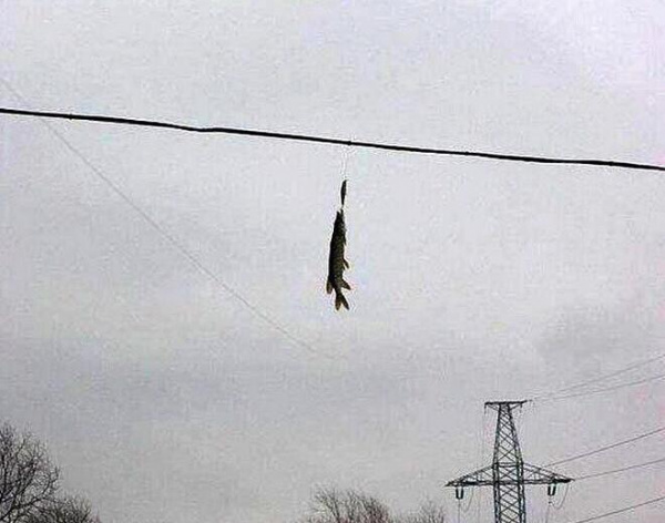 В одном из сообществ рыбаков Сызрани появилась необычная фотография - на ней запечатлели щуку, которая повисла на электрических проводах.