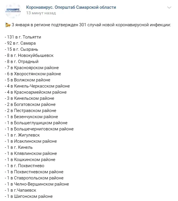 Теги:  новости 3 января, новости Самарской области, коронавирус, статистика, заболевание, суточный прирост, оперштаб