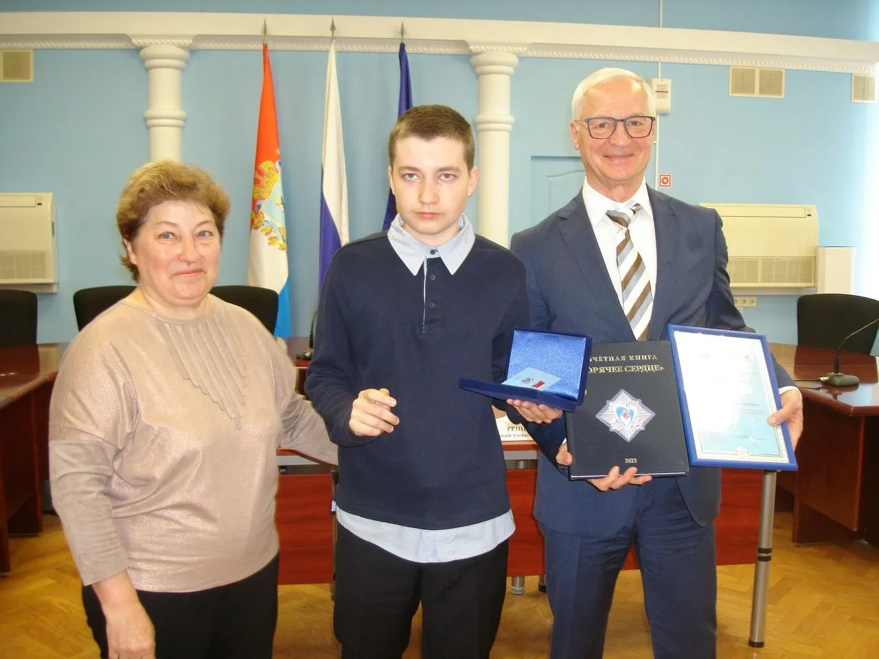 Ребятам также подарили по экземпляру почетной книги "Горячее сердце – 2022", где размещены их портреты и истории, а также всех остальных ярких героев года, кто совершил выдающиеся благие дела.