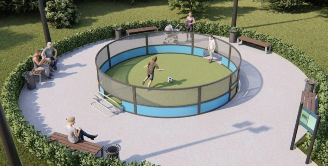 Специалисты уже произвели контрольные замеры и сейчас демонтируют верхний слой старого асфальтового покрытия. После они приступят к подготовительным работам для монтажа конструкции арены для игры в панна-футбол. Это отдельный вид уличного футбола, когда играют один на один. Однако можно разбиться и на пары.