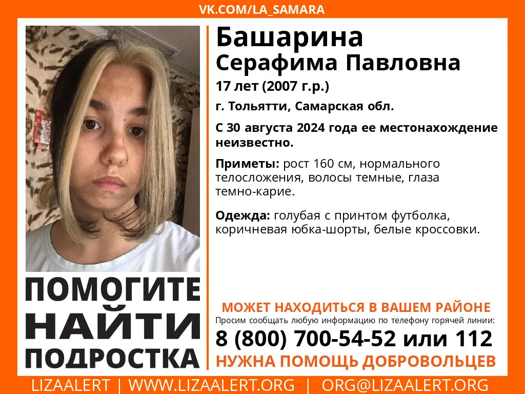 Семнадцатилетнюю девочку разыскивают в Тольятти. В поисковом отряде "ЛизаАлерт" сообщили, что она пропала в субботу.