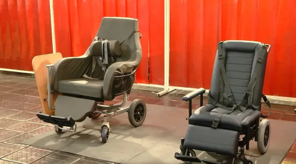- Спинка раскладывается почти полностью - до угла 160 градусов, обеспечивая лежачее положение. Также по просьбе заказчика мы сохранили колесную базу от импортного образца, что повысило удобство и мобильность кресла, - говорит исполнительный директор завода Денис Кулько.