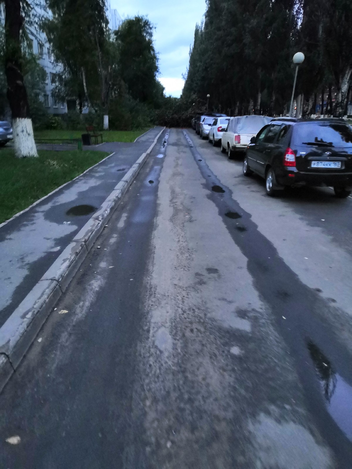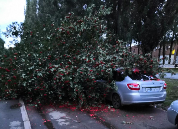Судя по фото, которые выложили горожане, дерево упало сразу на три стоящих машины, полностью закрыв их своими мощными ветками.