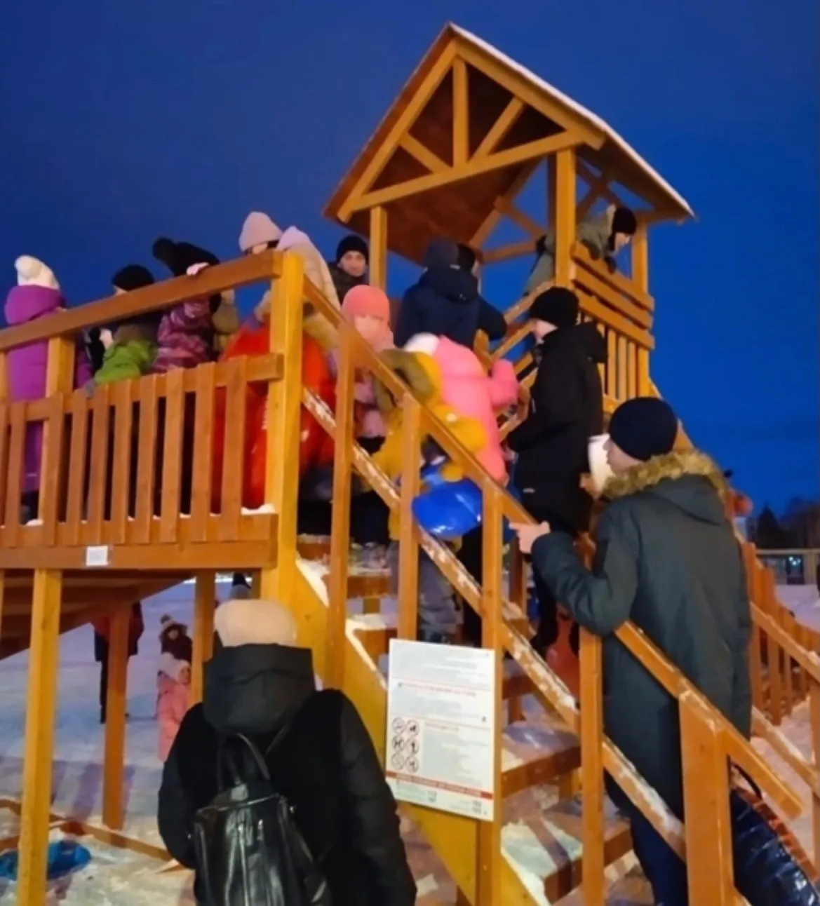 А также рассказали, что на горке следует быть аккуратными, соблюдать очередность подъема и спуска, не толпиться, кататься только на ледянках или "ватрушках".
