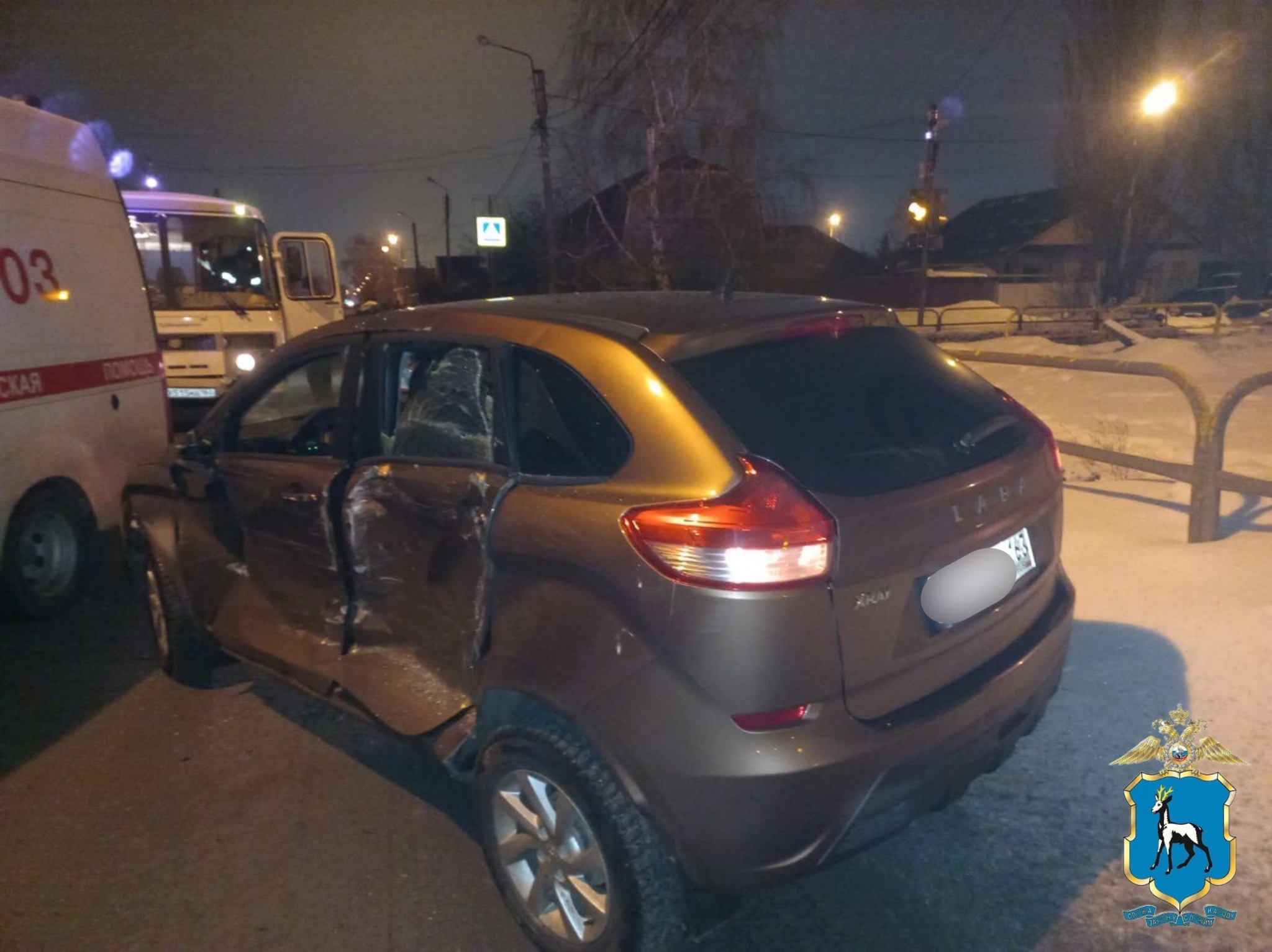 В 4:05 41-летняя женщина на LADA X-Ray ехала по ул. Герцена и на пересечении с ул. Ларина не пропустила автобус ПАЗ и врезалась в него. Он двигался по главной. Владелицу легковушки госпитализировали.
