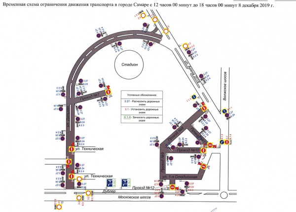 Игра начнется в 15:00 по самарскому времени. В связи с этим несколько дорог будут перекрыты для транспорта. Это касается 1-й Стадионной улицы от Проезда № 9 до Проезда 10. Там будут действовать ограничения с 12 до 18 часов.
