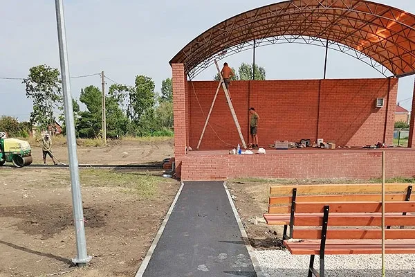 Нынешним летом вокруг территории ДК установлено ограждение из 3D-сетки, которое органично сочетается с кованой оградой, установленной с лицевой стороны. Построена летняя сцена, площадка перед ней заасфальтирована, проложена дорожка от сцены до Дома культуры, чтобы артисты могли без помех добраться до места выступления. Уставлены лавочки для зрителей вдоль аллей сквера и рядом с детской площадкой.