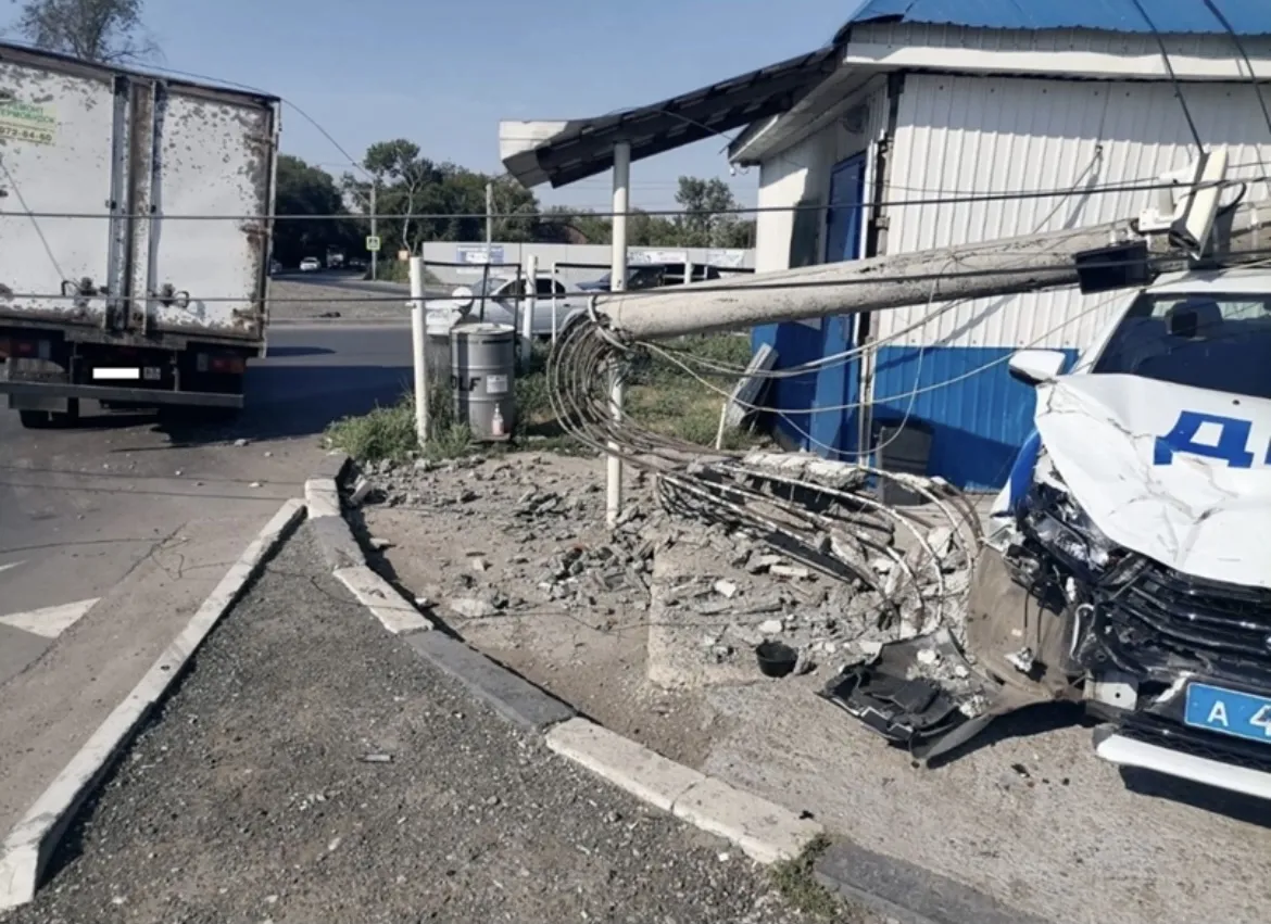 В Зубчаниновке грузовик "уронил" опору на патрульную машину