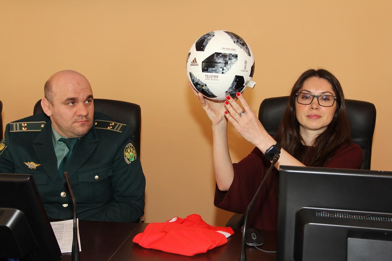 В Самарской таможне продемонстрировали официальный футбольный мяч игр ЧМ-2018. Его изготовителем является фирма Adidas. Презентовала мяч Марина Клинцова, представитель Международной федерации футбольных ассоциаций FIFA. Речь на встрече также шла об отличительных особенностях оригинальной продукции. Помимо этого, правообладатели известных брендов и служащие таможни обсудили взаимодействие в вопросах защиты интеллектуальной собственности, сообщает пресс-служба Самарской таможни.
