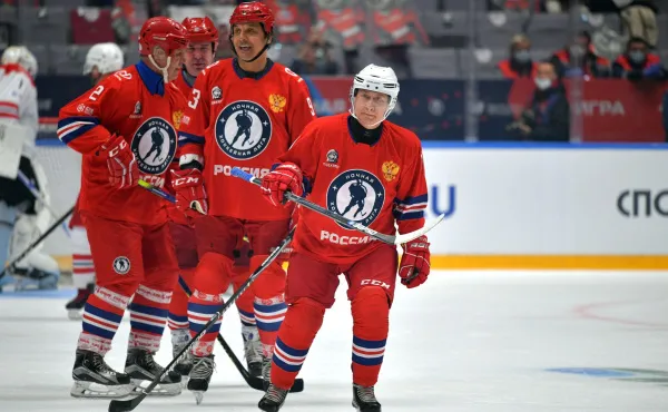 Команда Владимира Путина одержала победу со счётом 13:9. Российский лидер в матче забросил 8 шайб.