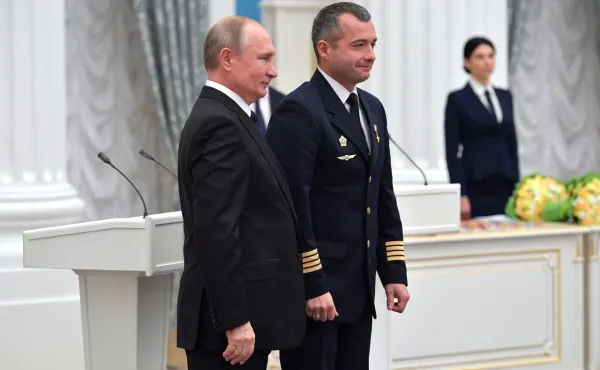 Сегодня, 21 ноября, в Кремлевском дворце президент Российской Федерации Владимир Путин наградил пилотов Дамира Юсупова и Георгия Мурзина званием Героя России.