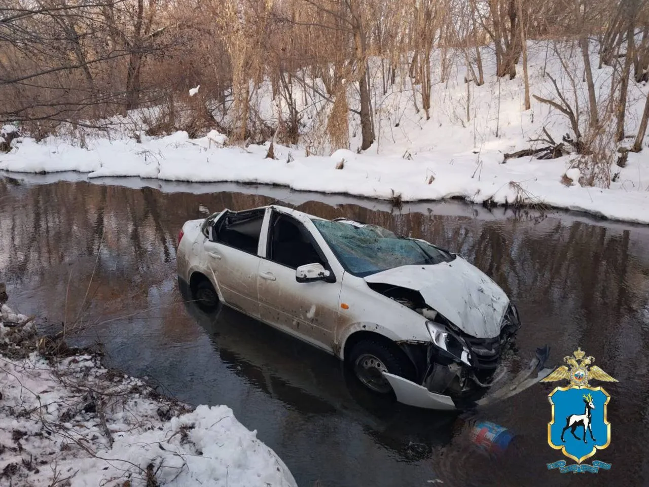37-летний водитель на автомобиле "Лада Гранта" ехал по улице Кирпичной в Сызрани. В районе дома № 52 машина съехала в кювет и вылетела в реку Крымзу.