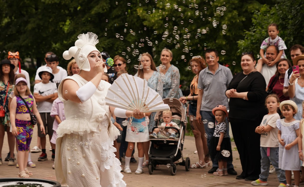 На площадке "Движения первых" (0+) проходит концерт детских творческих коллективов, мастер-классы, шоу мыльных пузырей, работает фотобудка с моментальной печатью (0+).