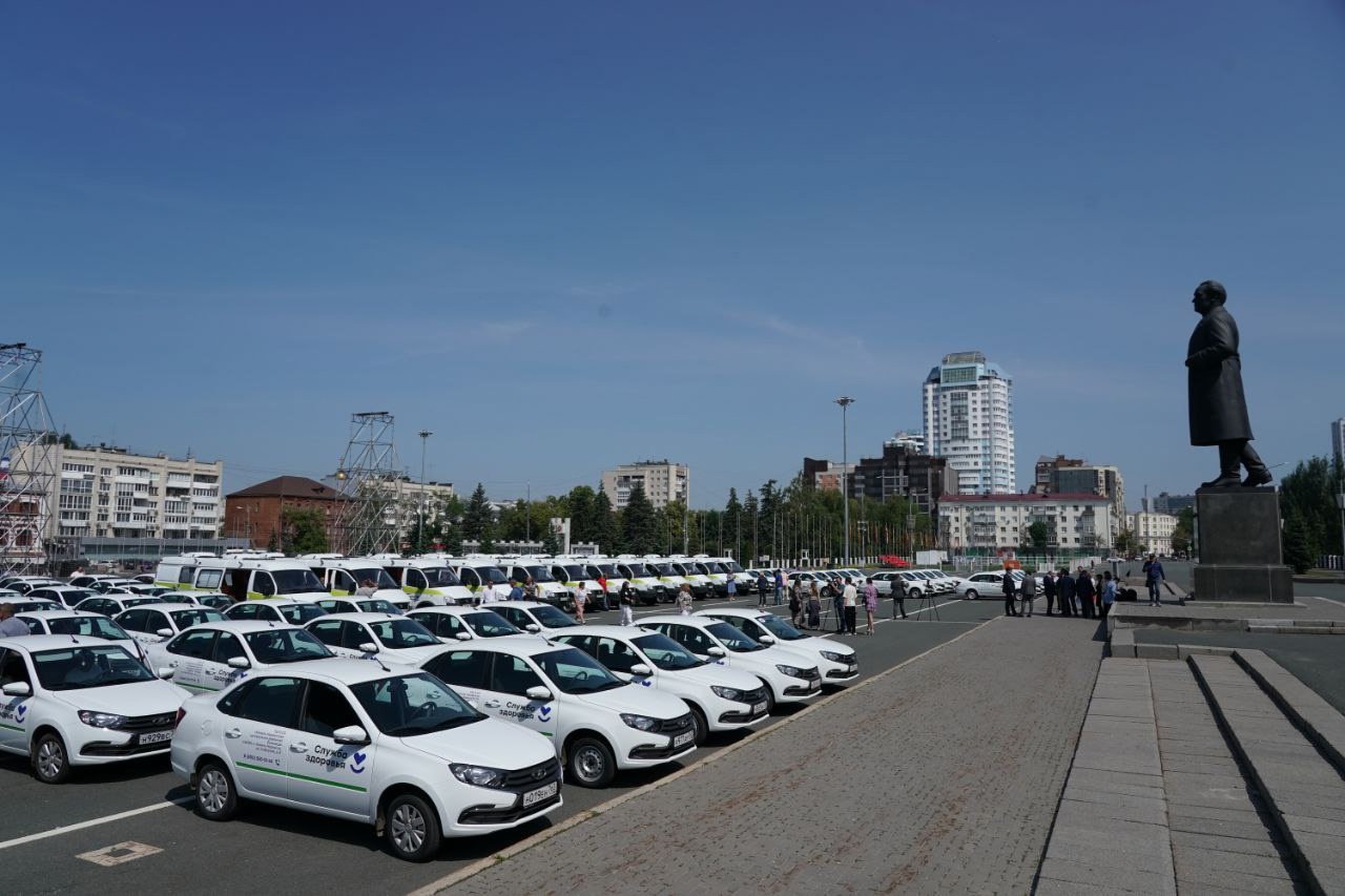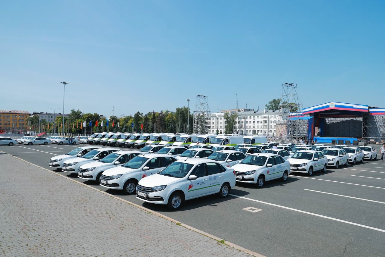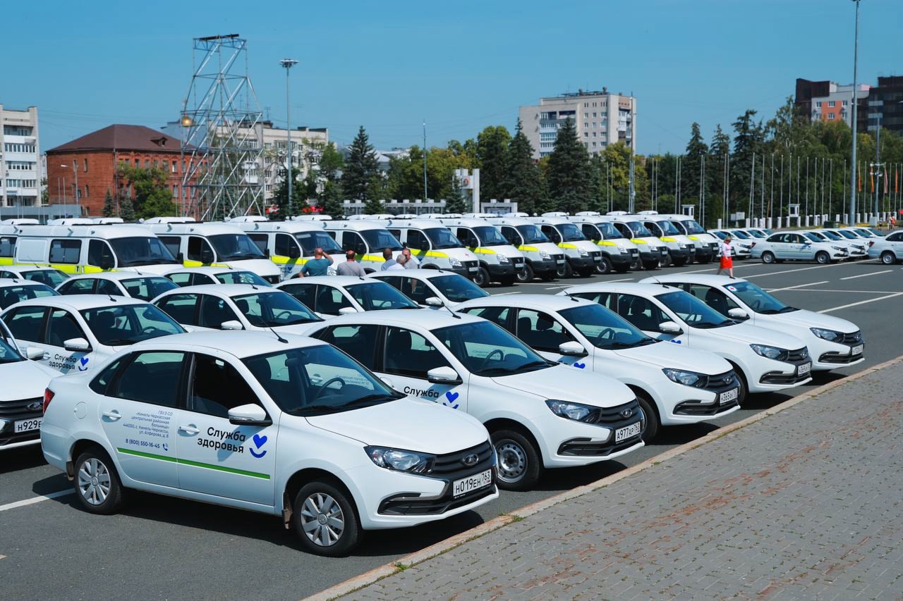 Всего передано 106 машин, из них 83 легковых автомобиля "Лада Гранта" и 23 автомобиля с полным приводом с повышенной проходимостью, оснащенных приемным устройством и носилками, на базе "ГАЗ Соболь".