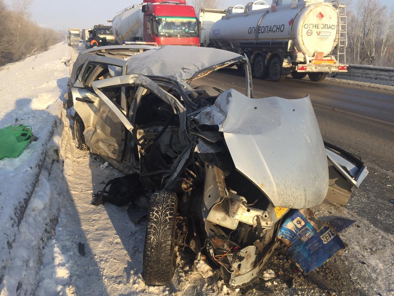Вылетел на встречку: на трассе в Самарской области "Калина" столкнулась с грузовиком