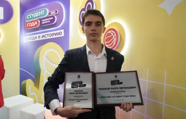 Марк Марков из Богатовского государственного сельскохозяйственного техникума Смолякова завоевал на конкурсе сразу несколько наград. Учащийся стал обладателем Гран-при "Студент года 2022" и победителем в номинации "Молодой профессионал года".