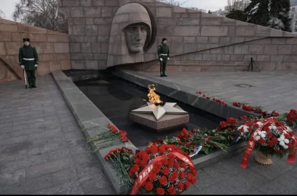 Мемориальную композицию, символизирующую скорбящую Мать-Родину, установили в сентябре 1971 года в память о 225 тысячах жителей региона, не вернувшихся с полей сражений Великой Отечественной войны. Перед горельефом тогда же, в сентябре, зажгли Вечный огонь, который за почти 51 год ни разу не был потушен.