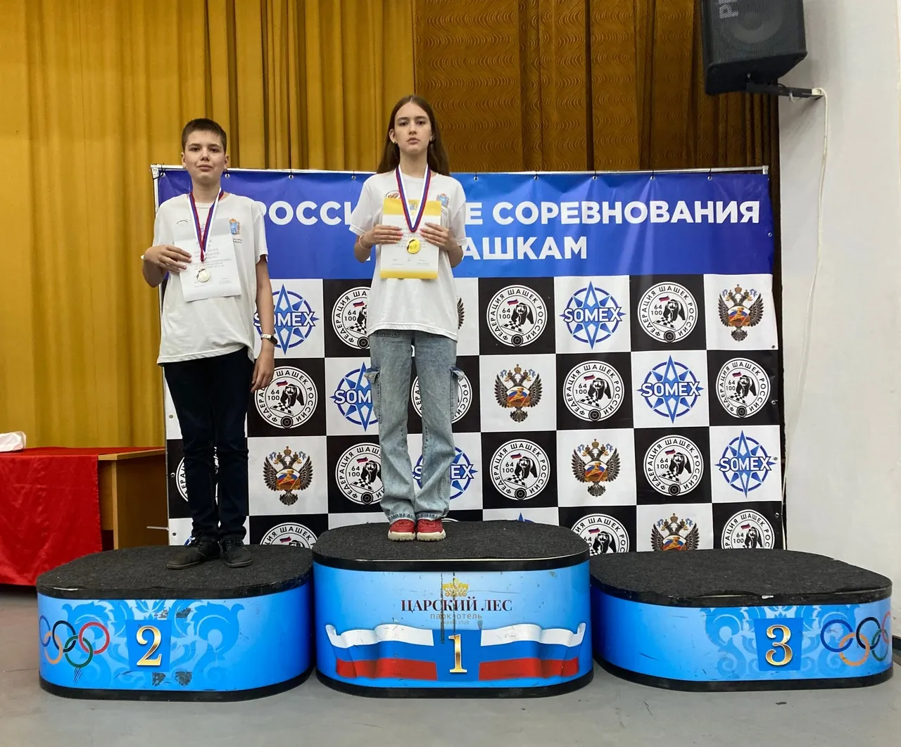 Сначала шашисты из 28 регионов участвовали во всероссийских соревнованиях "Чудо-шашки" среди команд общеобразовательных школ. Честь региона защищала команда-победитель областных соревнований из школы № 57 (Самара). В составе играли Ксения Дашкова, Арина Голодяева, Виктория Осипова и Захар Голодяев. Из 28 команд самарцы заняли седьмое место. Затем прошли всероссийские соревнования по русским шашкам в личном зачете. Среди девушек до 17 лет Арина Голодяева выиграла классическую и молниеносную программы и стала второй в быстрой игре. Среди юношей до 14 лет самарец Дмитрий Ероскин занял второе место в "классике" и молниеносной игре и показал третий результат в быстрой игре.