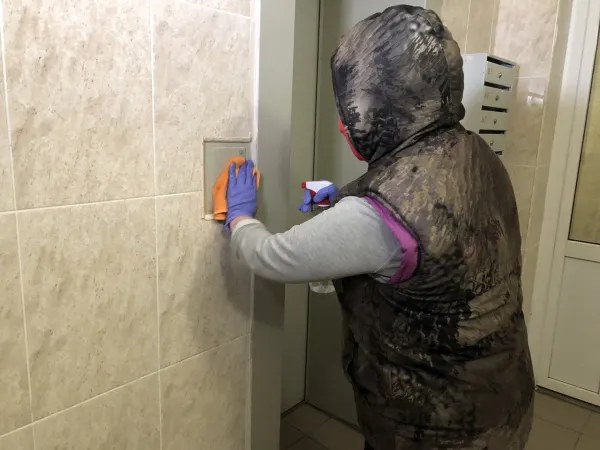 Так, хлорсодержащими растворами в подъездах обрабатывают перила, кнопки вызова лифта, поручни, ручки дверей, почтовые ящики, а также крышки мусоропроводов. Как отмечают в городской администрации, обработка ручек и дверей квартир не входит в перечень обязанностей управляющей компании.