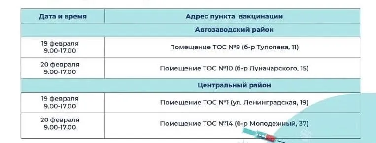 19 и 20 февраля в Тольятти вновь проходит акция "Здоровый дом - здоровый двор". В помещениях ТОС с 9 до 17 часов будут работать стационарные пункты вакцинации. Всего откроют четыре прививочных кабинета - по два в Автозаводском и Центральном районах. В удобное время горожане смогут пройти первый этап вакцинации, ревакцинироваться и сделать прививку от гриппа. Всем горожанам старше 60 лет, сделавшим прививку, вручат подарок - коробку вкусных конфет.