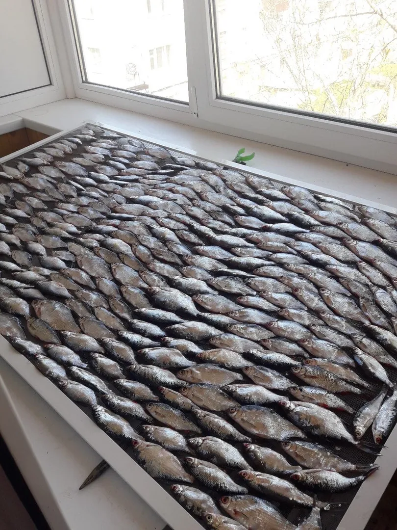 Сегодня, 29 апреля, житель Сызрани выложил в группе "ВКонтакте" фотографии с добычей. На них видно, что сызранец аккуратно разложил несколько десятков рыбин сушиться на балконе. Чешуйчатых рядов оказалось так много, что издалека они напомнили настоящий ковёр - только не из шерсти, а из подводных обитателей. Также на снимке видно, что мужчина сделал "бусы", насадив улов на длинную веревку.