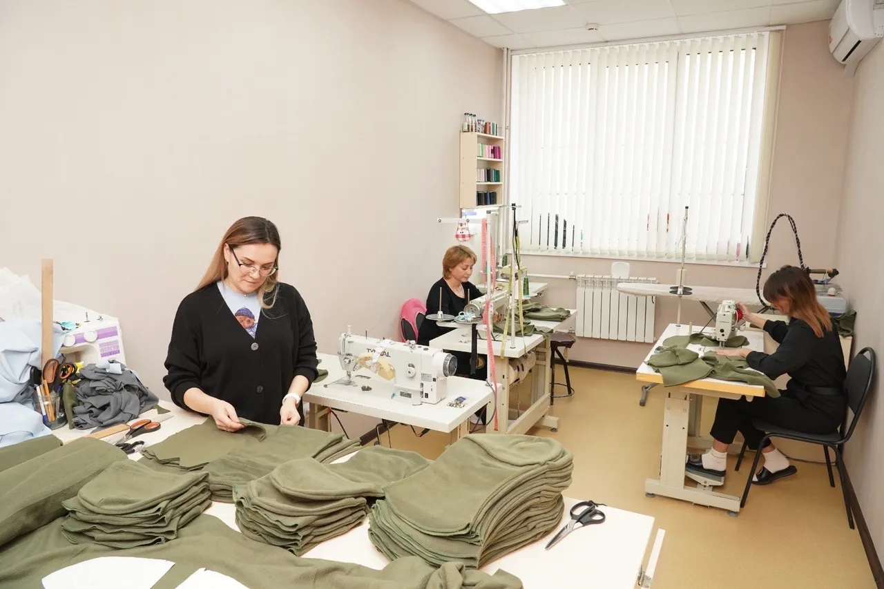 Швейной мастерской руководит Ольга Курскова. Основная работа трех мастериц заключается в пошиве костюмов для творческих коллективов района. Однако в последние несколько дней швеи заняты изготовлением балаклав для военнослужащих, находящихся сейчас на фронте.