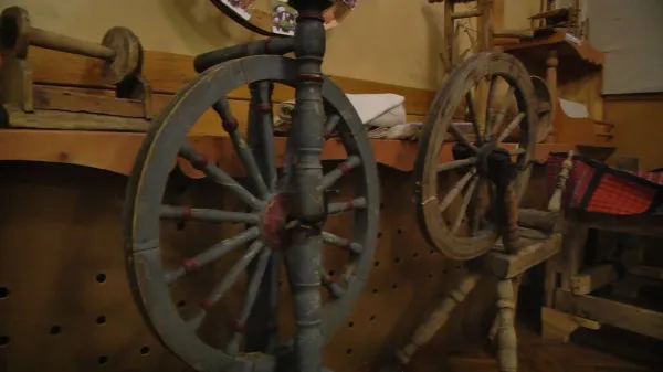 В коллекции десятки приспособлений для обработки льняного, конопляного и шерстяного волокна. Старинные прялки собирались несколько лет по всей России.
