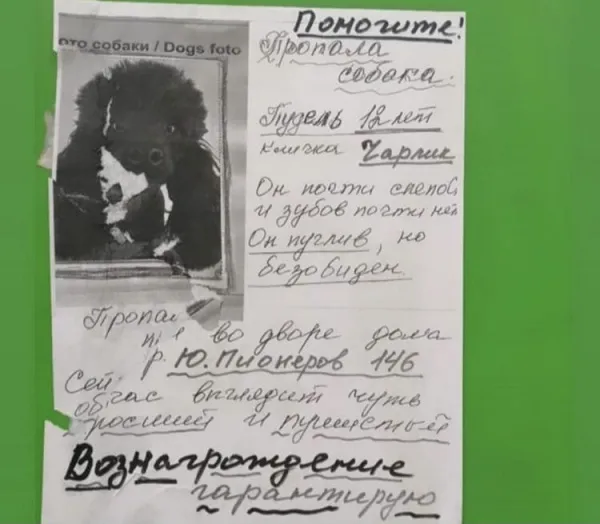 - Помогите! Пропала собака. Пудель - 12 лет. Кличка Чарлик. Он почти слепой и зубов практически нет. Он пуглив, но безобиден, - такое описание своему любимцу дала хозяйка.