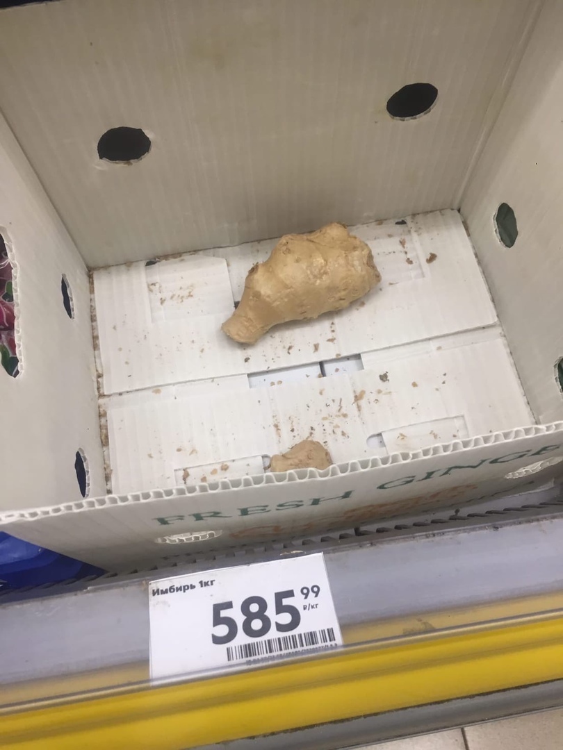 Ещё пару недель назад жители региона жаловались на то, что корень имбиря продают по 6-7 тысяч рублей за килограмм. Нынешние цены радуют: всего 585 руб. Возможно, именно из-за сравнительно низкой стоимости самого продукта в коробке не оказалось.