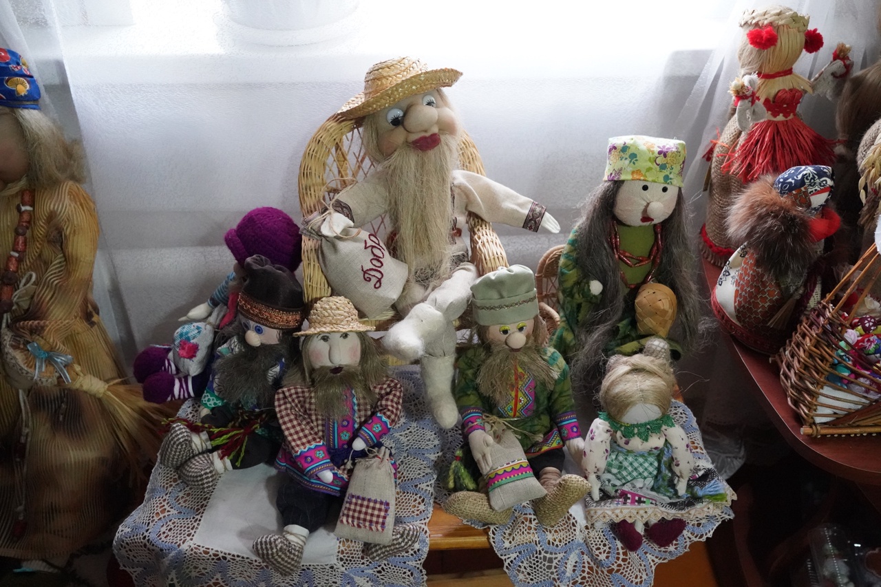 Некоторые куклы в этом "музее" одеты в национальные костюмы, и по ним можно изучать особенности узоров и цветовые символы разных народов России.